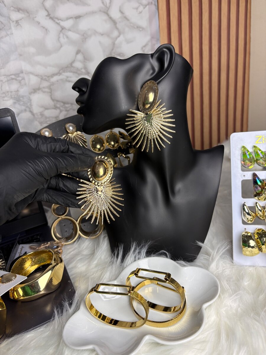 Ces boucles d'oreilles dorées au design moderne et élégant sont l'accessoire parfait pour sublimer vos tenues. Fabriquées avec soin, elles ajoutent une touche de sophistication et de glamour à votre style. Idéales pour les occasions spéciales ou pour une utilisation quotidienne, elles apportent une allure chic et tendance.