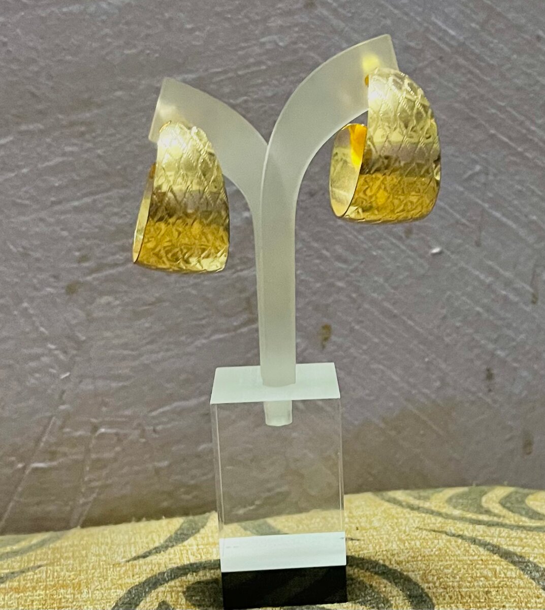 Ajoutez une touche d'élégance à votre tenue avec ces magnifiques boucles d'oreilles dorées. Parfaites pour une soirée ou un événement spécial, elles capturent et reflètent la lumière, attirant tous les regards. Fabriquées avec un souci du détail, elles sont légères et confortables à porter tout au long de la journée. Un choix idéal pour sublimer votre style et ajouter une note de sophistication.
