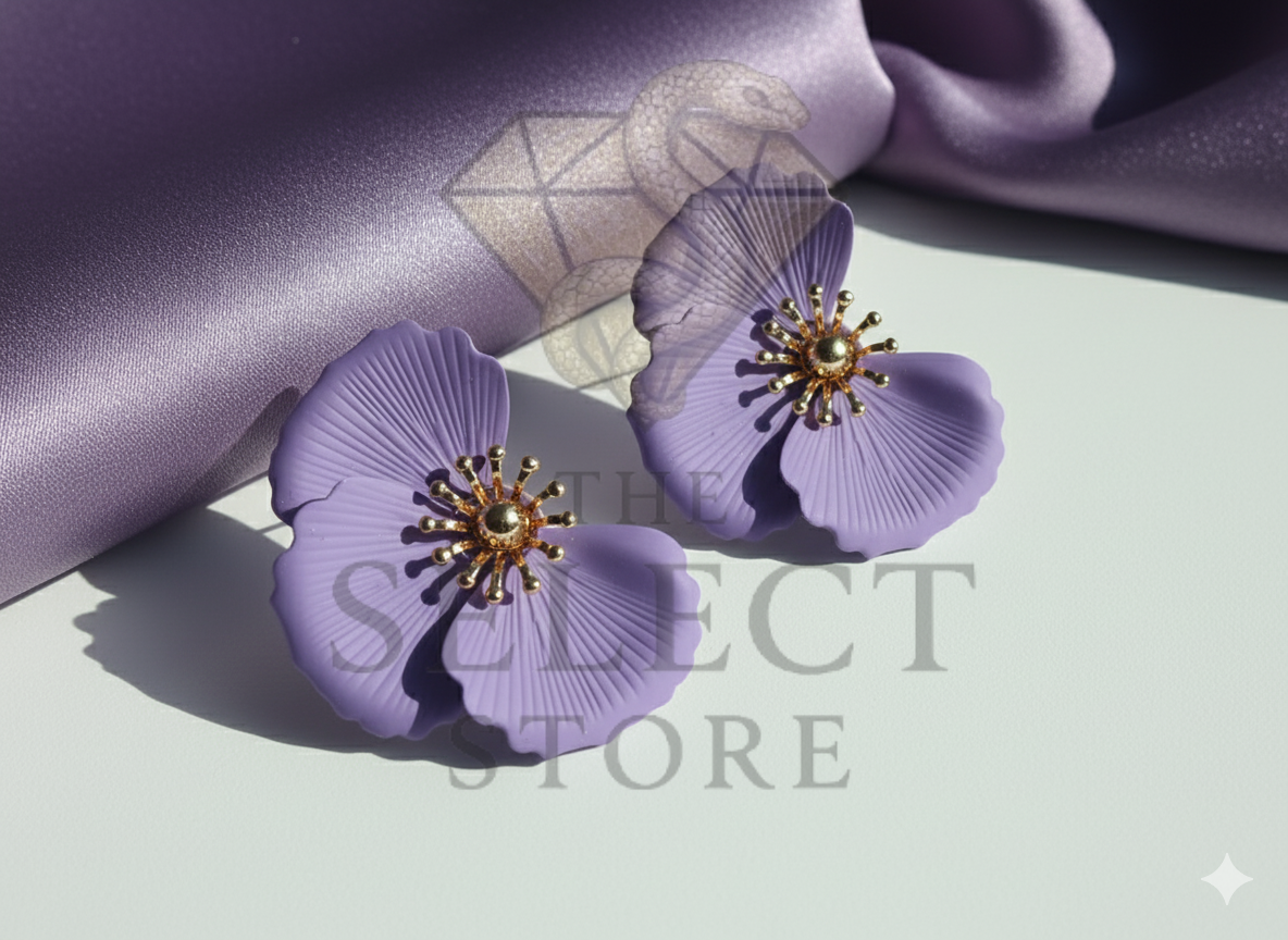 Ajoutez une touche d'élégance à votre tenue avec ces magnifiques boucles d'oreilles florales en violet. Leur design délicat et leur finition dorée offrent un style sophistiqué idéal pour toute occasion spéciale. L'accessoire parfait pour exprimer votre féminité et votre originalité.