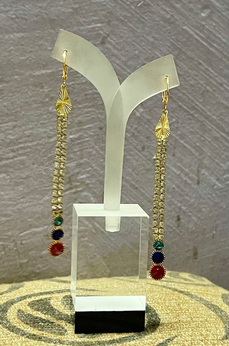 Ajoutez une touche de glamour à votre tenue avec ces boucles d'oreilles pendantes dorées. Idéales pour les soirées ou les occasions spéciales, elles captent la lumière avec élégance. Design raffiné avec des détails colorés distinctifs, parfaites pour sublimer votre style.