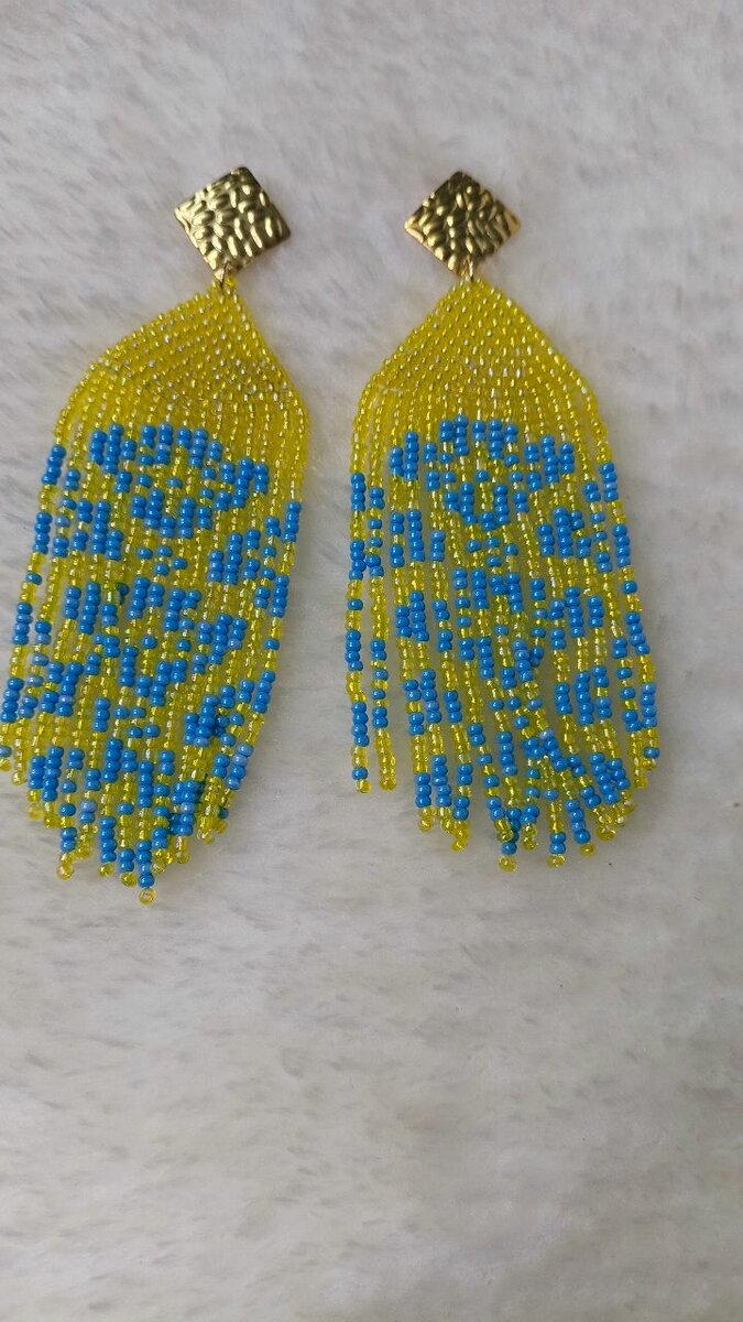 Ajoutez une touche de couleur à votre style avec ces magnifiques boucles d'oreilles perlées. Fabriquées à la main avec des perles jaunes et bleues, elles sont parfaites pour un look bohème chic. Idéales pour les occasions spéciales ou pour rehausser votre tenue quotidienne.