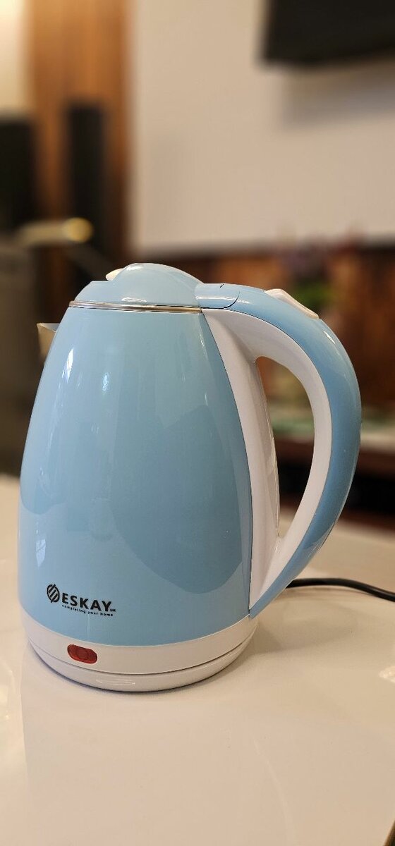 Élégante bouilloire électrique Eskay de 2L, idéale pour chauffer rapidement l'eau pour vos boissons chaudes. Design moderne avec un revêtement bleu attrayant. Dotée d'une fonction d'arrêt automatique et d'une puissance élevée pour un gain de temps considérable en cuisine. Parfaite pour la maison ou le bureau. Faites bouillir de l'eau en toute sécurité et efficacité avec Eskay.