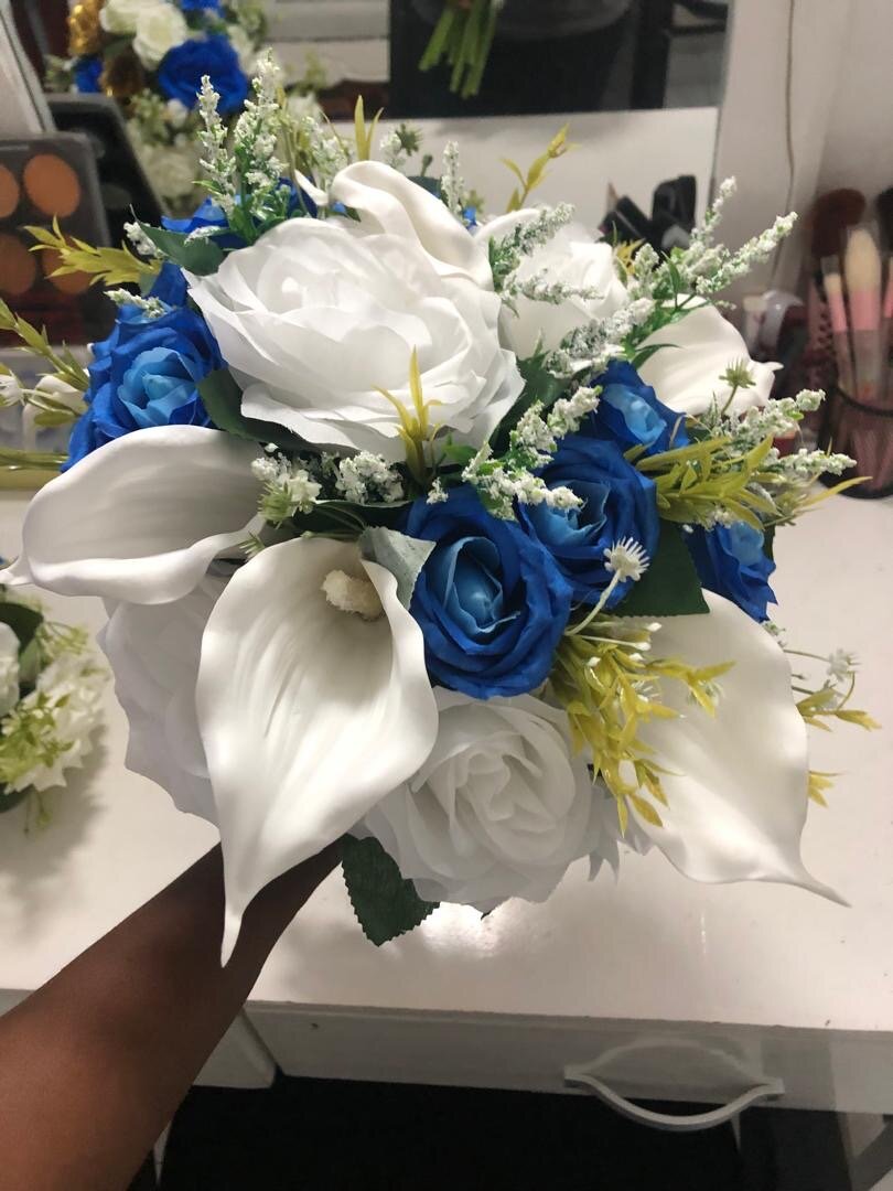 Ce magnifique bouquet de fleurs artificielles combine élégance et durabilité. Parfait pour décorer votre maison ou comme cadeau original, ce bouquet mélange des roses bleues et blanches avec des lys calla délicats. Idéal pour des occasions spéciales ou comme pièce maîtresse, il ajoute une touche de sophistication à n'importe quel espace.