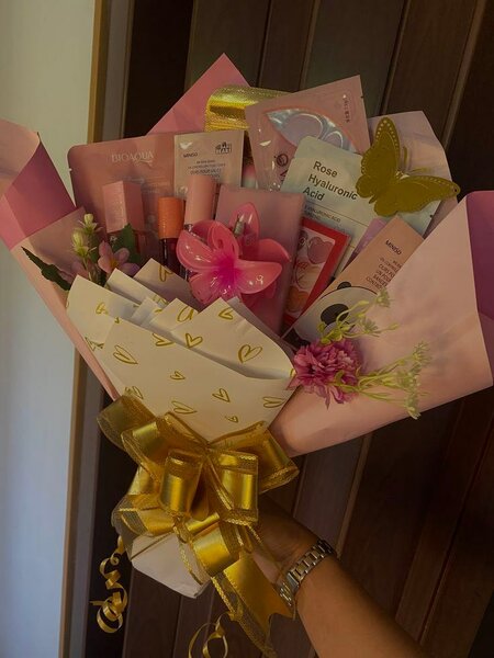Offrez un bouquet de maquillage unique et élégant. Parfait pour les amateurs de beauté, ce bouquet contient une variété de produits de maquillage de qualité. Idéal pour les occasions spéciales ou comme cadeau.
