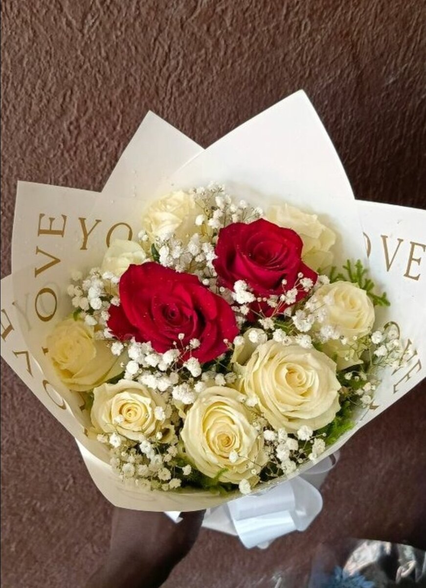 Ce bouquet de roses mêle harmonieusement des roses rouges vibrantes et des roses blanches élégantes, pour un effet de contraste saisissant. Idéal pour exprimer votre amour ou pour célébrer une occasion spéciale. La touche délicate des fleurs de gypsophile ajoute une touche de douceur et de romantisme. Parfait pour offrir lors de fêtes, anniversaires ou à celle ou celui que vous aimez.