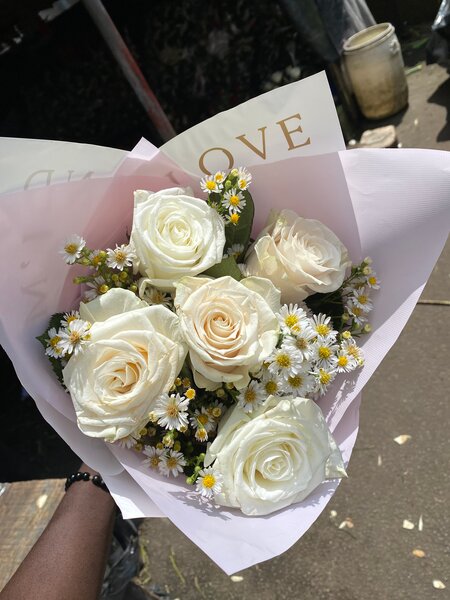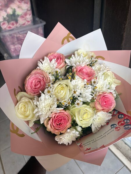 Ce bouquet élégant de roses pastel est agrémenté de délicates fleurs blanches, parfait pour exprimer vos sentiments. Offrez-le pour un anniversaire, un mariage ou simplement pour faire plaisir à vos proches.