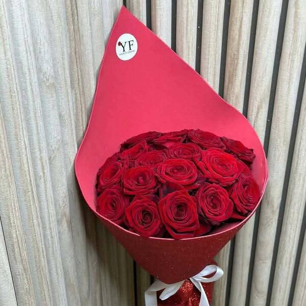 Surprenez vos proches avec ce somptueux bouquet de roses rouges éclatantes, symbole de passion et d'élégance. Parfait pour les anniversaires, célébrations ou pour exprimer vos sentiments à une personne spéciale. Offrez un geste inoubliable avec ce magnifique arrangement floral.