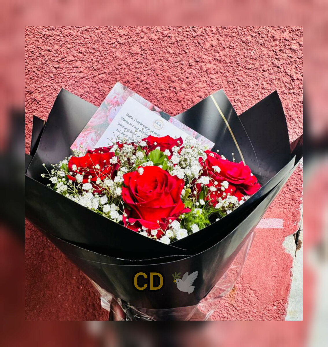 Offrez ce magnifique bouquet de roses rouges, parfait pour exprimer votre amour et affection. Emballé dans un élégant papier noir, il est idéal pour toutes les occasions spéciales. Faites-en le choix parfait pour des anniversaires, célébrations ou déclarations romantiques.