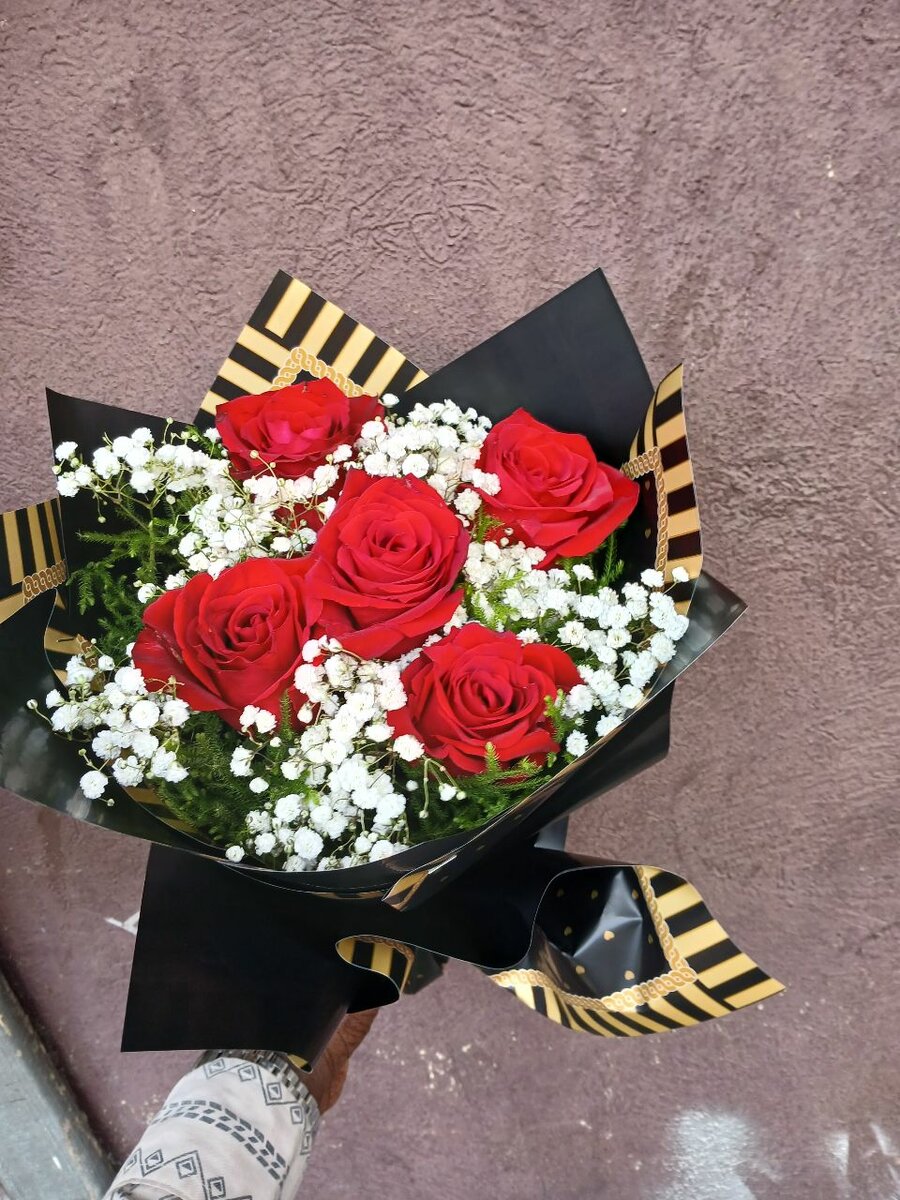 Offrez une touche de romantisme avec ce magnifique bouquet de roses rouges accompagné de délicates fleurs blanches. Idéal pour toutes occasions spéciales, ce bouquet est parfait pour exprimer l'amour et l'affection.