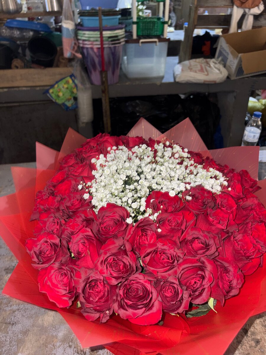 Offrez un geste d'amour intemporel avec ce magnifique bouquet de roses rouges. Parfait pour les occasions spéciales comme les anniversaires, mariages ou déclarations d'amour. Les roses sont soigneusement arrangées avec des fleurs blanches délicates pour un contraste élégant. Choisissez ce bouquet pour exprimer vos sentiments les plus sincères.