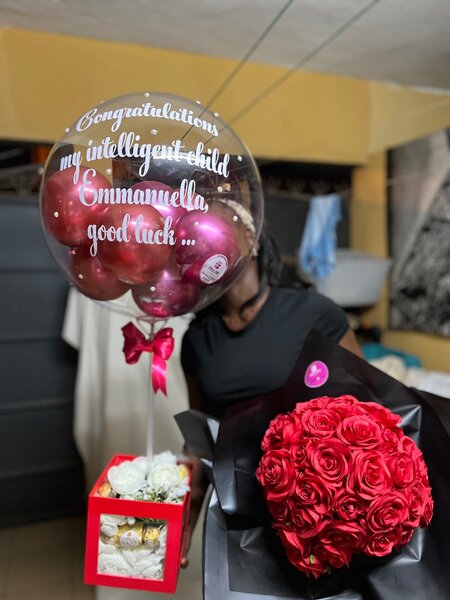 Ce magnifique bouquet de roses rouges accompagné dun petit dej à offrir tôt le matin à sa perle ou son roi ️