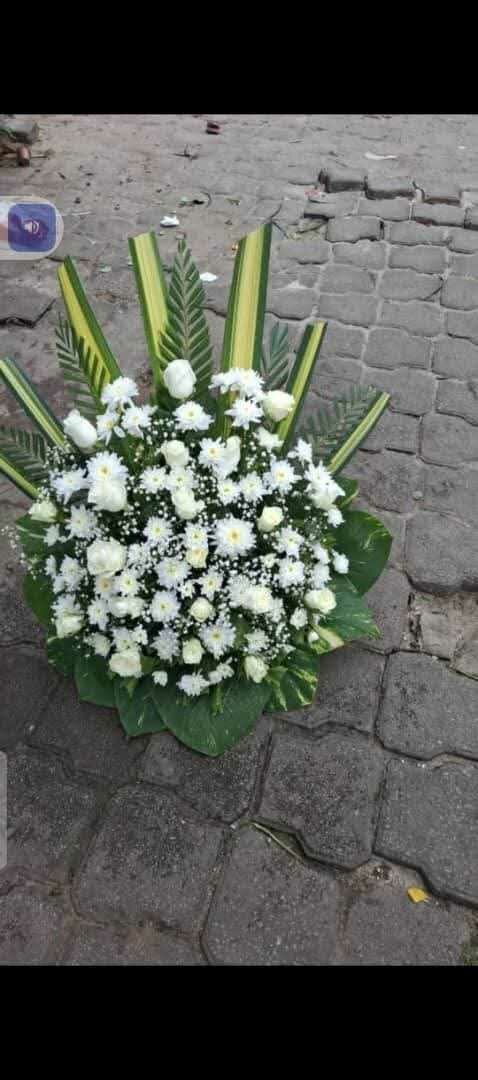 Composé de fleurs blanches élégantes, parfait pour rendre hommage lors de cérémonies. Idéal pour symboliser la paix et le respect.