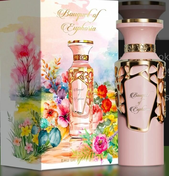 Bouquet of Euphoria by Fragrance World is a Floral fragrance for women. This is a new fragrance. Bouquet of Euphoria was launched in 2024. Top notes are Heliotrope and Candied Fruits; middle notes are Gardenia, Jasmine and Sandalwood; base notes are Vanilla, Caramel and Musk.