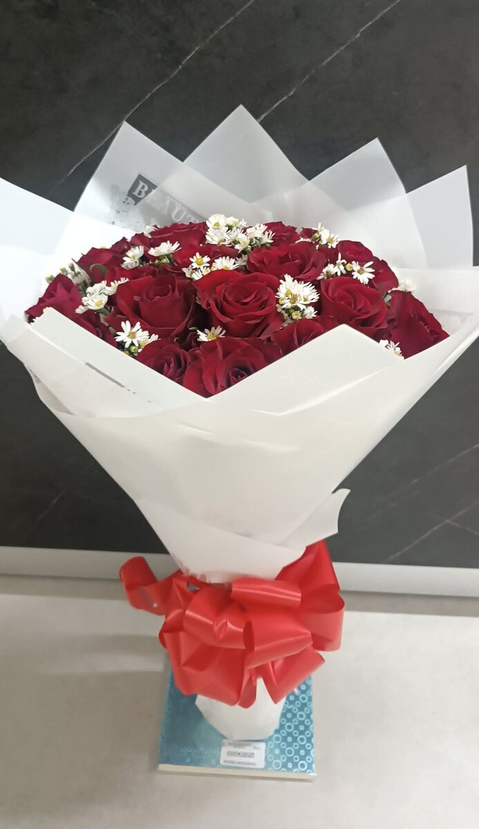 Surprenez vos proches avec ce somptueux bouquet de roses rouges, accentué de délicates fleurs blanches. Idéal pour déclarer votre amour ou illuminer une journée spéciale. Parfait pour toute occasion romantique ou festive.