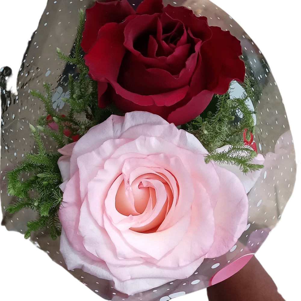 2 rose rouge et rose plus carte personnalisé