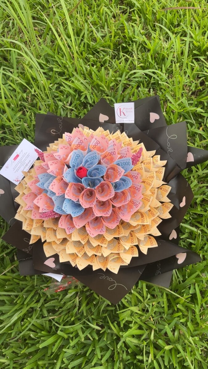 Surprenez avec ce bouquet unique fait de billets colorés et de délicieux chocolats, parfait pour célébrer avec élégance et originalité. Idéal pour toutes les occasions spéciales, ce cadeau allie luxe et gourmandise. Faites plaisir avec un présent mémorable qui illuminera le visage de vos proches.