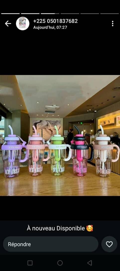 Découvrez notre bouteille glacée colorée avec paille intégrée, parfaite pour garder vos boissons fraîches toute la journée. Idéale pour les sorties, le bureau ou à la maison. Fabriquée en matériaux de qualité, elle est robuste et facile à nettoyer. Son design élégant et pratique en fait un excellent choix pour tous les amateurs de boissons rafraîchissantes. Disponible en plusieurs couleurs tendance.