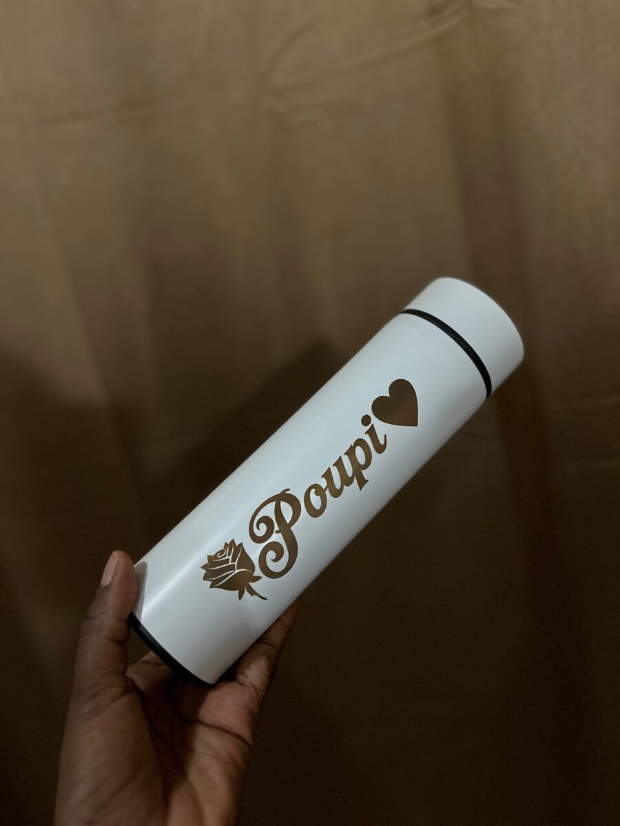 Gardez vos boissons à la température idéale avec notre bouteille thermos personnalisée. Conçue pour les amateurs de style, elle offre élégance et praticité. Son design unique et message personnalisé en font un cadeau parfait pour vos proches ou pour soi-même. Idéale pour le bureau, l'école ou les voyages.