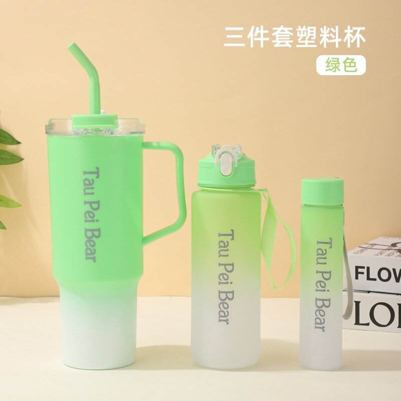 Ensemble de bouteilles en plastique durable, parfaites pour une hydratation facile au quotidien. Design élégant et coloré avec poignée pratique et paille intégrée. Idéal pour le sport, le bureau ou la maison. Un compagnon écologique pour toutes vos aventures!