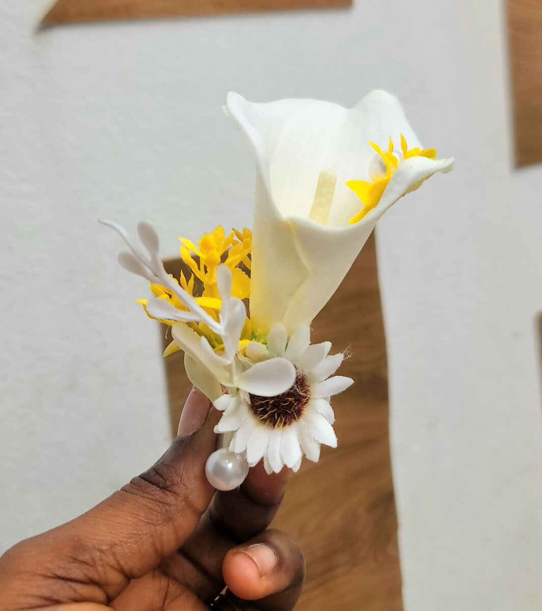 Ajoutez une touche sophistiquée à votre tenue avec cette belle boutonnière florale. Parfaite pour les mariages ou événements spéciaux, elle se distingue par son design délicat et ses couleurs harmonieuses.