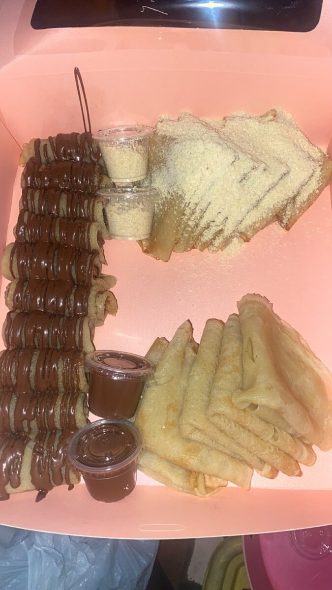 Découvrez notre délicieuse boîte à crêpes, parfaite pour des moments gourmands. Composée de crêpes moelleuses roulées avec du chocolat fondant et saupoudrées de fromage savoureux. Accompagnée de sauces onctueuses, cette boîte est idéale pour partager en famille ou entre amis. Parfaite pour un cadeau ou un dessert surprise !
