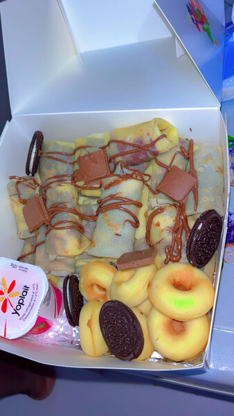 Découvrez notre déliceux coffret de crêpes moelleuses accompagnées de chocolats Kinder et d'une touche de Nutella. Parfait pour les anniversaires et les moments gourmands. Offrez une expérience sucrée inoubliable!
