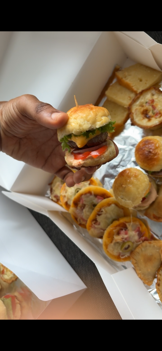 Découvrez nos mini burgers assortis, idéals pour vos apéritifs ou événements spéciaux. Chaque bouchée offre une explosion de saveurs avec des ingrédients frais et de qualité. Parfaits pour impressionner vos invités!