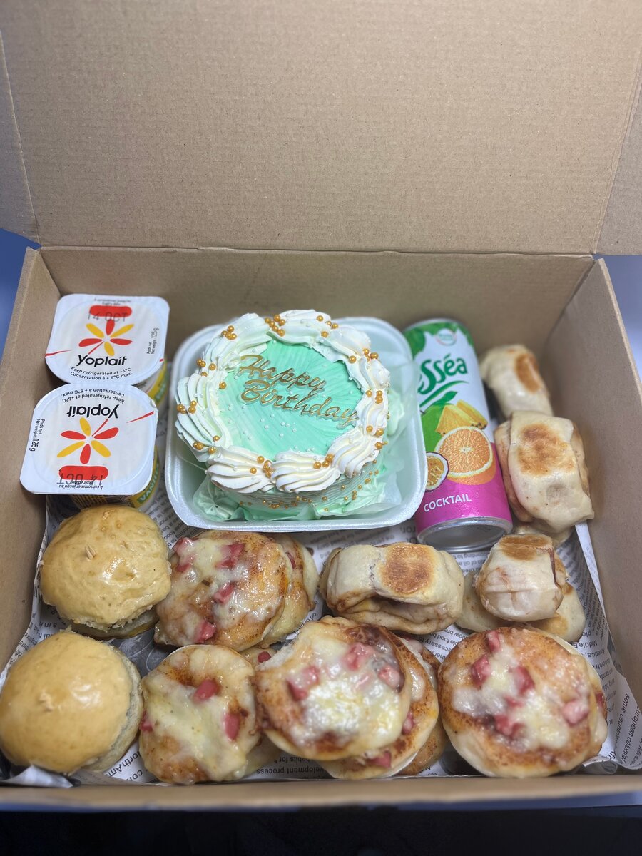 Surprenez vos papilles avec notre box gourmand. Comprenant un délicieux gâteau d'anniversaire, des yaourts savoureux, des brioches et mini-pizzas fromagères, ainsi qu'un jus tropical rafraîchissant. Parfait pour célébrer un anniversaire ou simplement savourer un moment spécial. Idéal pour partager ou offrir !