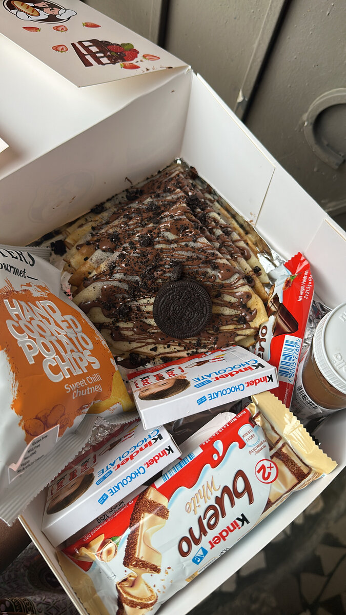 Découvrez le plaisir suprême avec notre box de gourmandises chocolatées. Parfaite pour les amateurs de chocolat, elle comporte des gaufres généreusement nappées de Nutella, des biscuits Kinder, et des chips pour une touche salée. Un régal pour les papilles ! Idéale pour partager entre amis ou pour offrir en cadeau gourmand. Commandez dès maintenant et savourez chaque instant sucré !