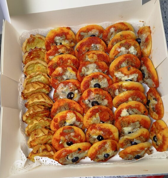 10 mini burger, 7 wraps 7 feuilleté à la viande 6 ailerons