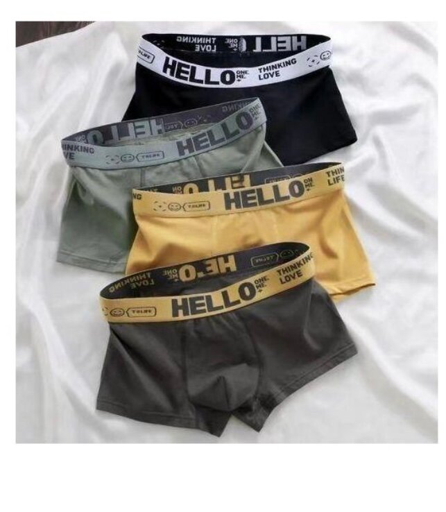 Lot de boxers confortables pour homme en coton doux. Idéal pour un usage quotidien avec ceinture élastique 'HELLO' distincte. Disponible en plusieurs couleurs modernes.