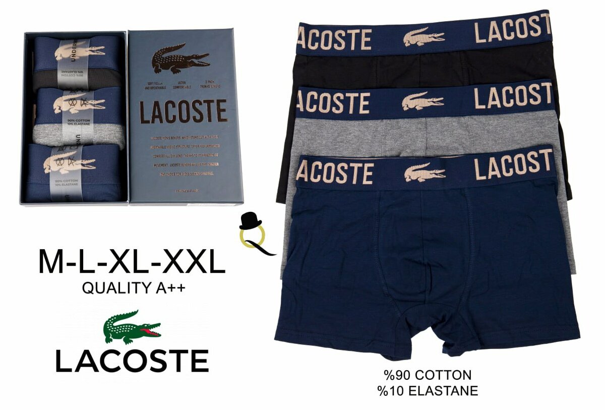 Découvrez nos boxers homme Lacoste, un mélange parfait de confort et de style. Fabriqués avec 90% de coton et 10% d'élasthanne, ces sous-vêtements assurent une élasticité optimale pour un confort au quotidien. Disponibles en tailles M à XXL, ils sont parfaits pour un usage quotidien ou sportif. Adoptez la qualité A++ Lacoste pour un toucher doux et une durabilité exceptionnelle.