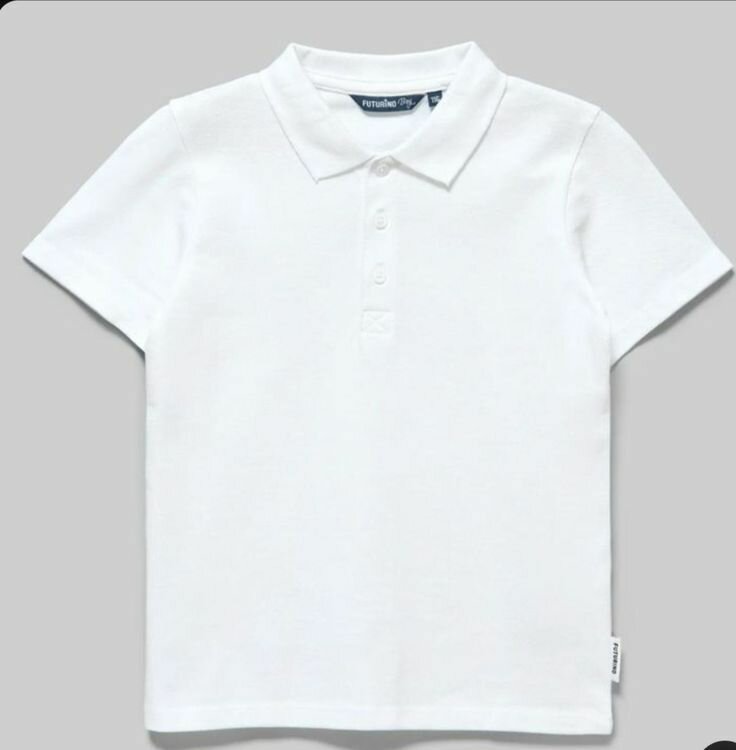 Classic boys' white polo shirt for a stylish look. Made from breathable fabric, perfect for everyday wear or school uniforms.