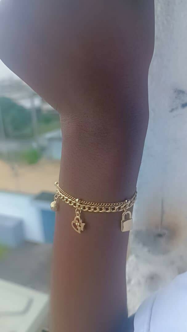 Un bracelet élégant avec des breloques dorées, touches de cœur et cadenas, idéal pour sublimer votre poignet. Parfait pour compléter vos tenues quotidiennes ou pour offrir en cadeau.
