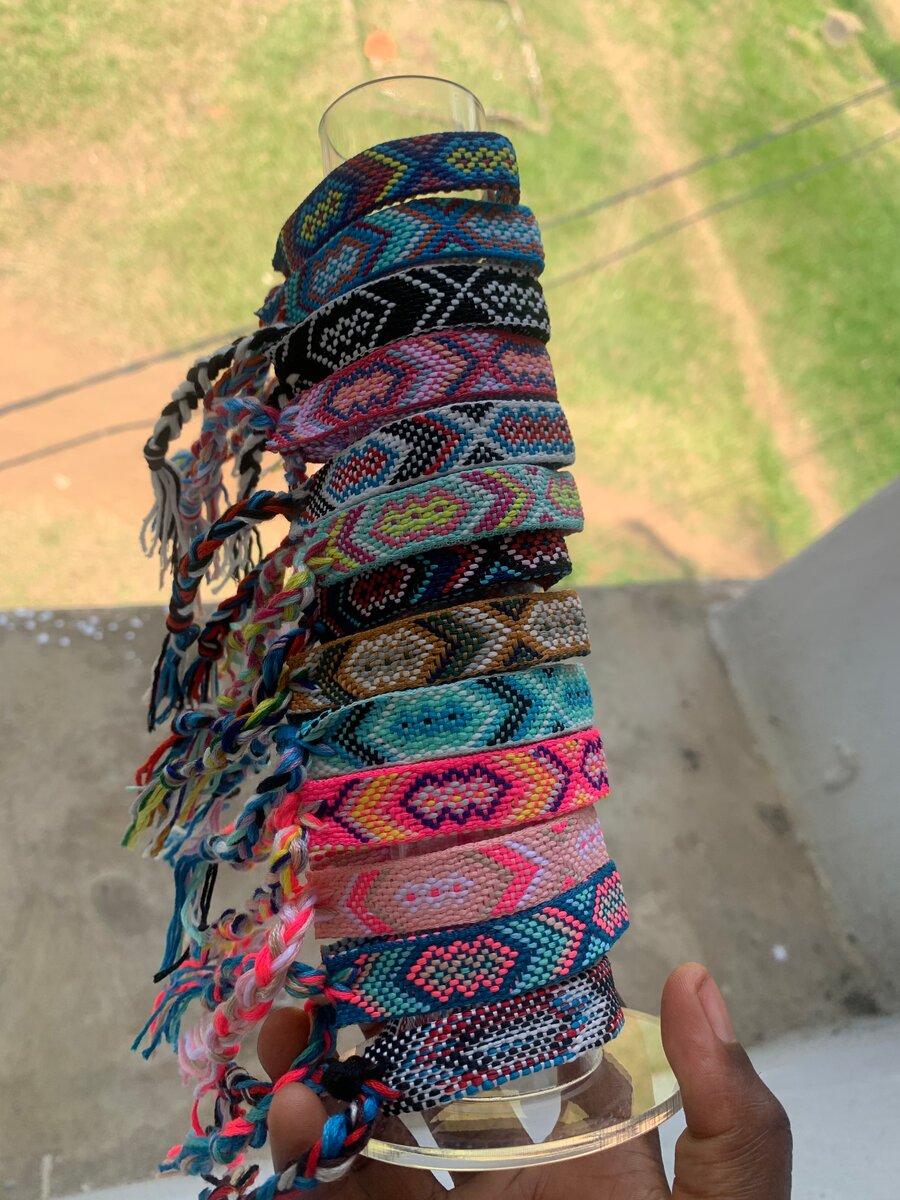 Ajoutez une touche colorée et artisanale à votre style avec ces bracelets d'amitié faits à la main. Parfaits pour offrir ou pour accessoiriser vos tenues, ces bracelets sont à la fois uniques et tendance. Polyvalents, ils s'ajustent facilement à n'importe quel poignet pour un confort optimal.