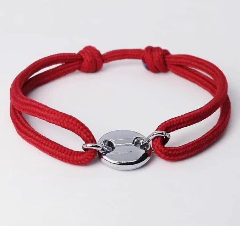 Élégant bracelet en corde rouge avec pendentif en métal, parfait pour un look tendance. Ajustable et confortable, idéal pour un usage quotidien ou pour offrir en cadeau. S'accorde avec toutes vos tenues.