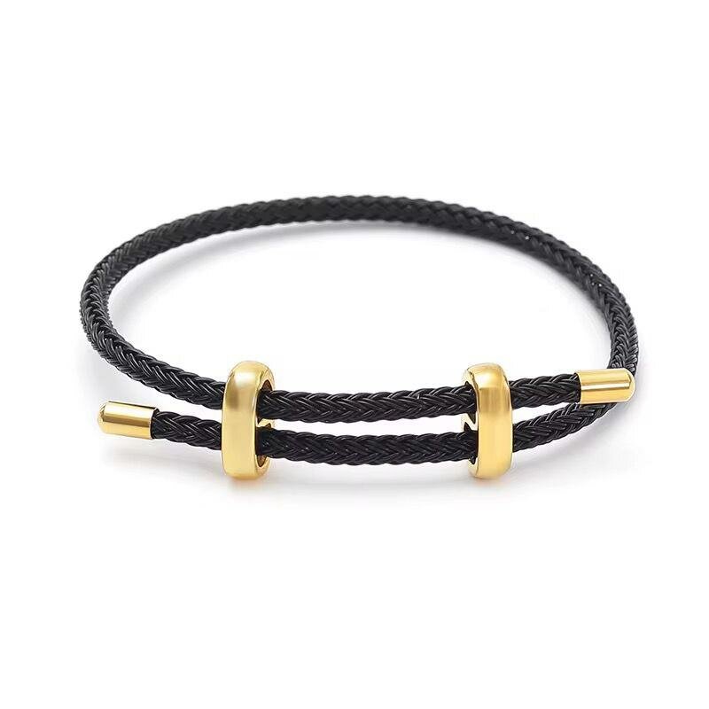 Découvrez nos bracelets en corde tressée avec finitions dorées, disponibles en noir et rouge. Parfaits pour ajouter une touche de sophistication à votre style. Idéal pour toutes occasions!
