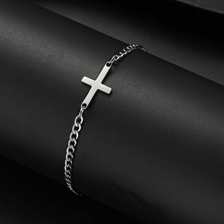 Exprimez votre style avec ce bracelet moderne en acier inoxydable, orné d'une croix épurée. Ce design contemporain combine la robustesse de l'acier inoxydable, reconnu pour sa durabilité et sa résistance à la corrosion, avec un symbole intemporel de foi et de protection.