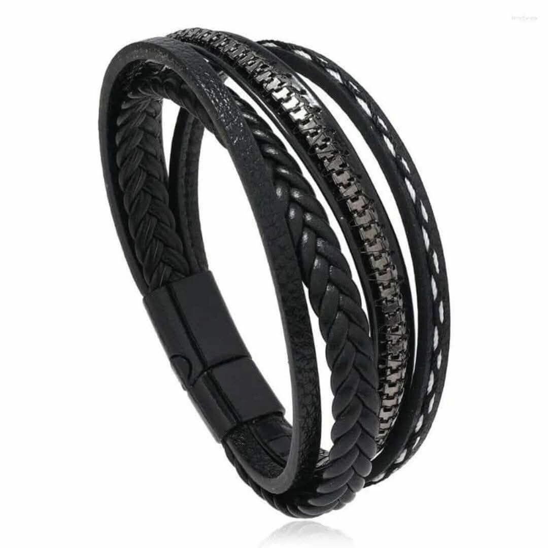 Découvrez ce bracelet en cuir noir tressé, un accessoire élégant et intemporel. Idéal pour ajouter une touche de sophistication à votre look quotidien. Parfait pour les hommes modernes.