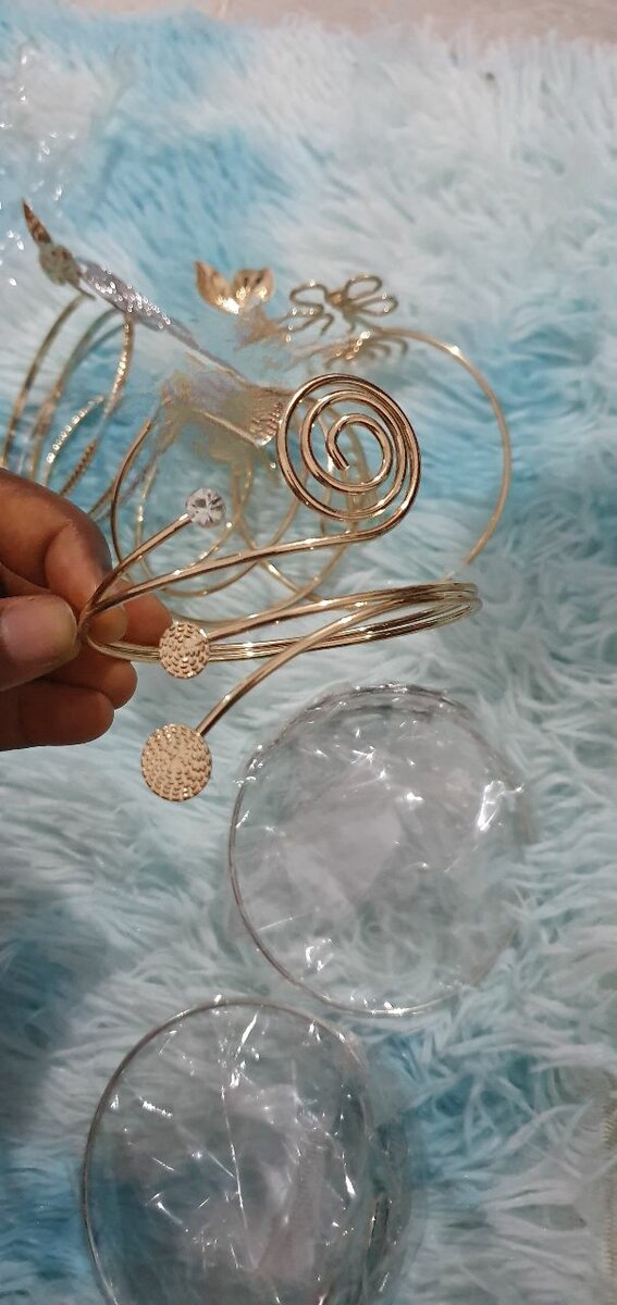 Ajoutez une touche élégante à votre tenue avec ce bracelet décoratif de bras doré artisanal. Parfait pour mariages, fêtes et soirées, ce bijou saura attirer tous les regards. Léger et confortable.