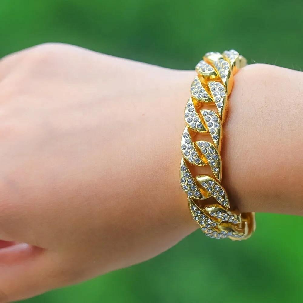 Ajoutez une touche d'élégance à votre tenue avec ce bracelet doré incrusté de brillants scintillants. Parfait pour les occasions spéciales ou pour rehausser votre look quotidien. Il se marie parfaitement avec une variété de styles, assurant un éclat remarquable à votre poignet.