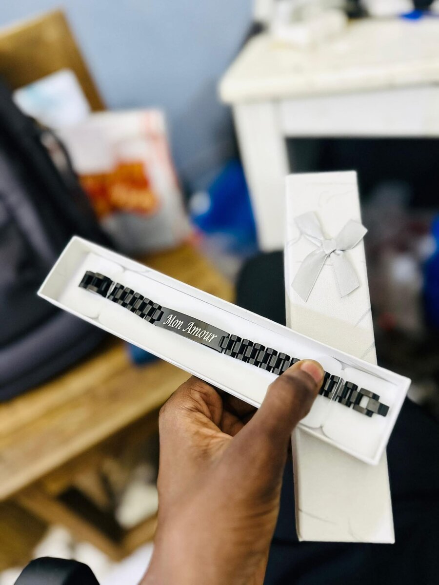 Optez pour ce bracelet en métal robuste, personnalisé avec un message de votre choix. Idéal pour un cadeau unique et sentimental. Disponibles en plusieurs coloris tendances, ces bracelets sont parfaits pour toute occasion.