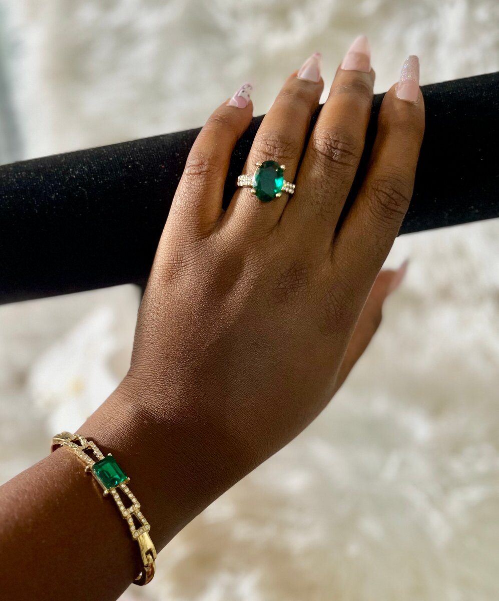 Ajoutez une touche de luxe à votre tenue avec ce bracelet doré orné d'une magnifique émeraude. Parfait pour toutes occasions spéciales, son design élégant et ses détails étincelants en font un choix incontournable. Idéal pour compléter votre look avec une touche de couleur et de sophistication.
