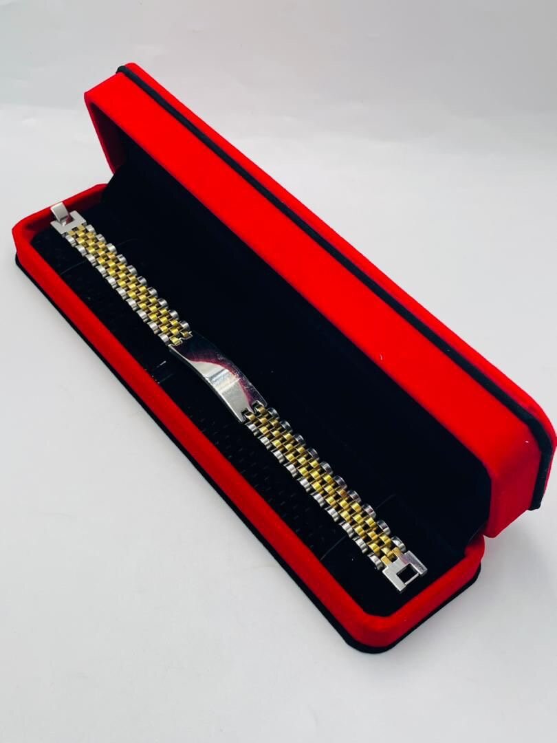 Optez pour ce bracelet chic en acier inoxydable bicolore. Parfait pour un style sophistiqué au quotidien ou pour une occasion spéciale. Cadeau idéal !