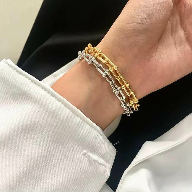 Ce bracelet en acier inoxydable doré et argenté est parfait pour rehausser n'importe quelle tenue. Résistant et tendance, il convient pour un usage quotidien ou pour des occasions spéciales. Un choix élégant pour tous les styles.