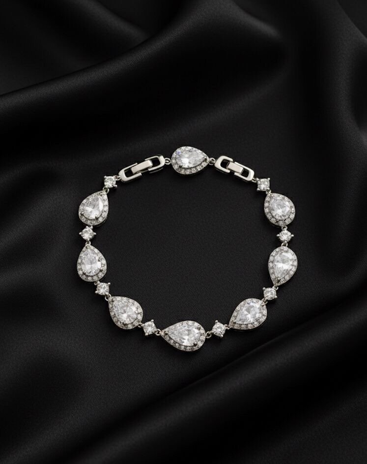 Ajoutez une touche de sophistication à votre look avec ce magnifique bracelet en argent orné de cristaux étincelants. Parfait pour les occasions spéciales ou pour rehausser votre tenue quotidienne. Idéal comme cadeau ou pour vous faire plaisir.