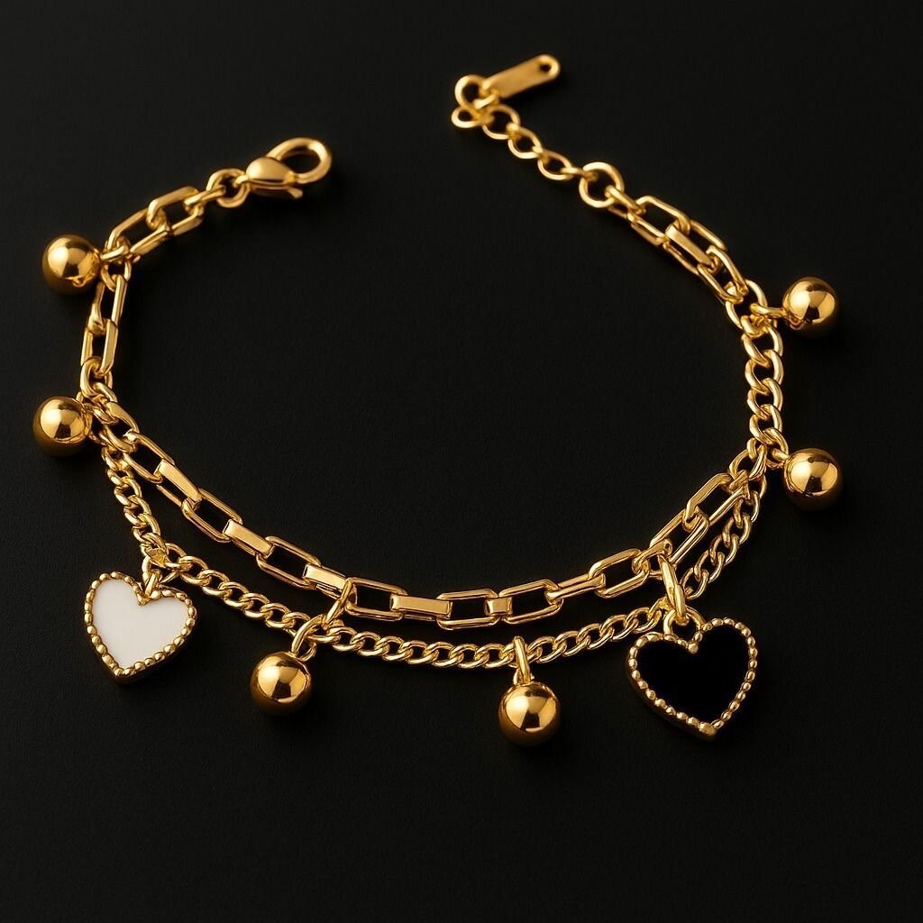 Élégant bracelet en or avec charms, parfait pour ajouter une touche de glamour à votre tenue. Idéal pour les soirées et événements spéciaux. Exprimez votre style unique avec une touche sophistiquée.