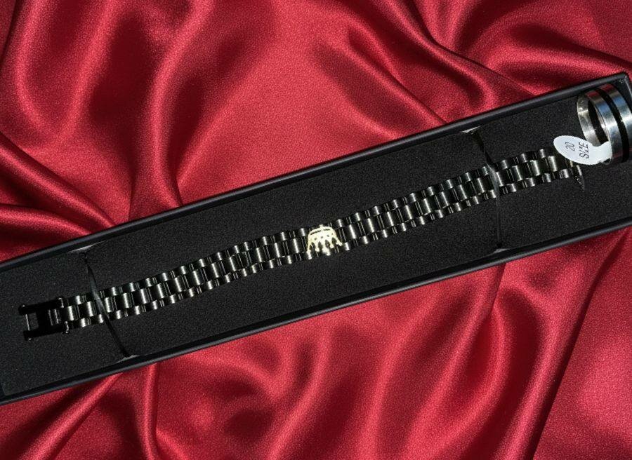Élégant bracelet en acier inoxydable avec une finition dorée. Conçu pour durer, ce bracelet ajoute une touche de sophistication à tout look. Disponible en différentes tailles.