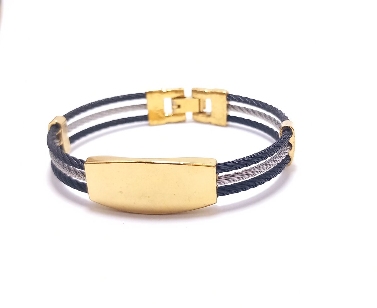 Ce bracelet en acier inoxydable allie élégance et durabilité. Parfait pour un look moderne et raffiné, il se distingue par sa finition dorée et son design unique à plusieurs câbles. Idéal pour les occasions formelles ou quotidiennes, il saura rehausser n'importe quelle tenue.