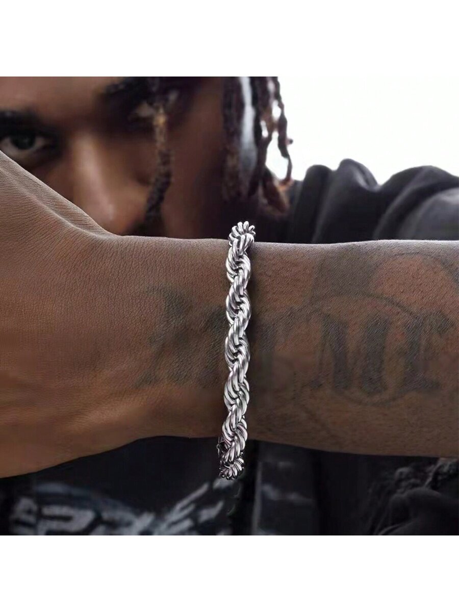 Ce bracelet en acier inoxydable torsadé est l'accessoire parfait pour compléter votre style. Sa conception robuste et élégante s'adapte à toutes les occasions. Idéal pour ceux qui cherchent un look moderne et sophistiqué. Achetez-le maintenant pour ajouter une touche de classe à votre tenue.